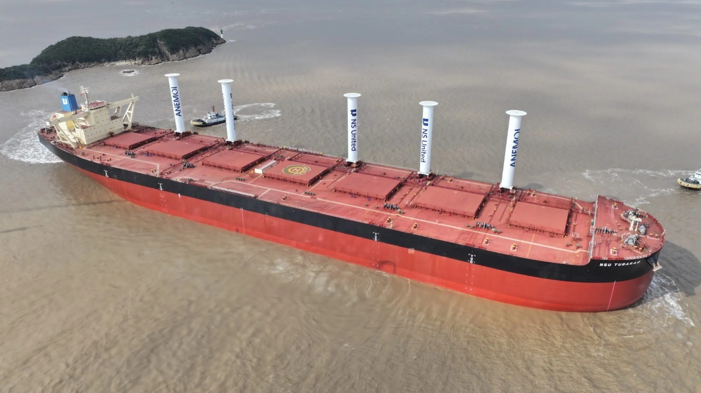 На верфи Zhoushan Xinya Shipyard (КНР) во время планового ремонта рудовоз NSU Tubarao (VLOC) дедвейтом 400 тыс. тонн был оснащен пятью складными роторными парусами высотой 35 м. Об этом сообщила компания Anemoi Marine Technologies, специализирующаяся на производстве вспомогательных движительных судовых установок.