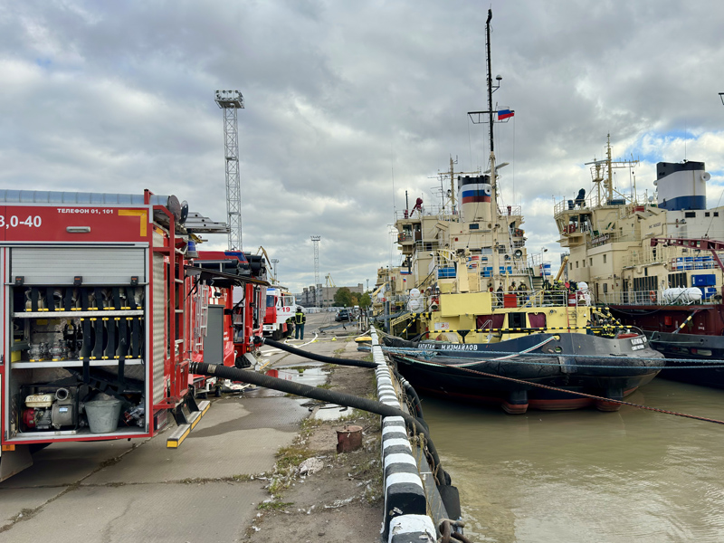 В Большом порту Санкт-Петербург отработали действия при пожаре на судне
