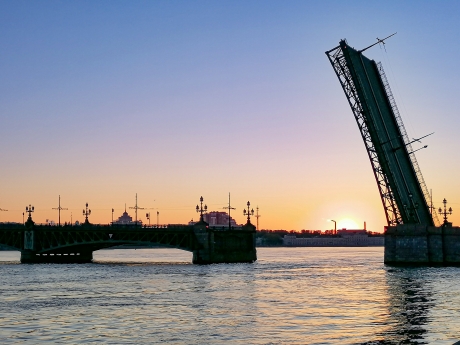 Дворцовый мост: с 01:10 мск до 02:50 мск и с 03:10 дмск о 04:55 мск